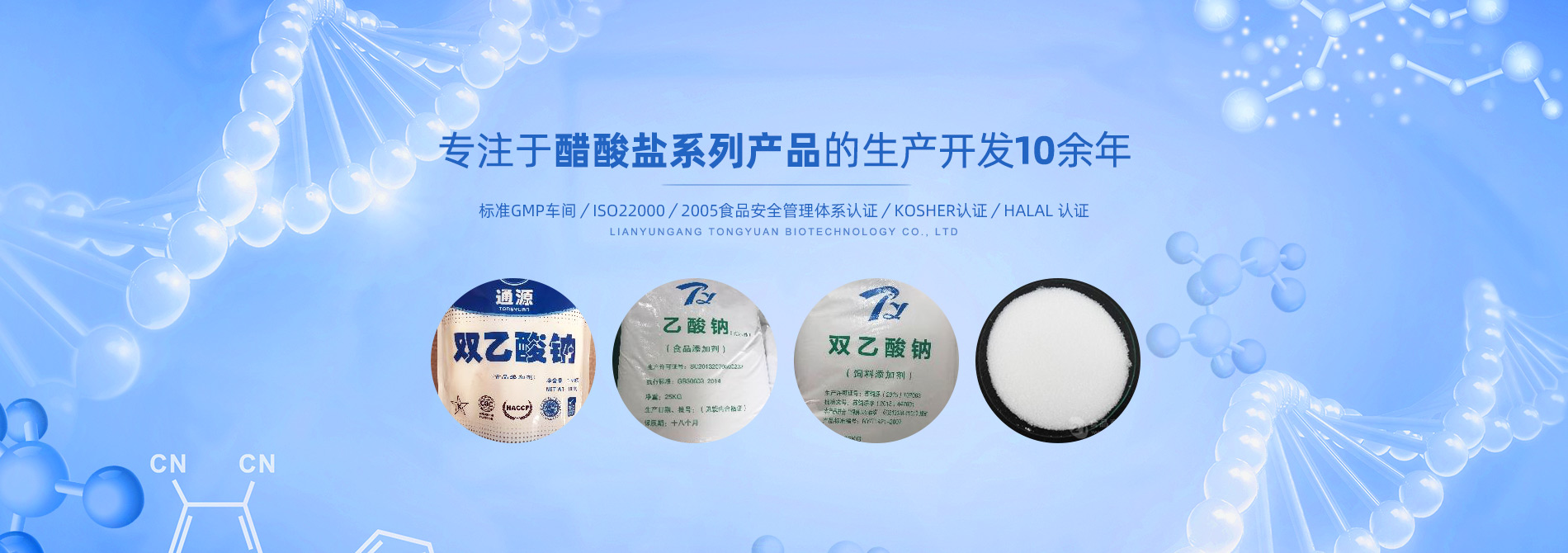 連云港市通源生物科技有限公司 是生產(chǎn)雙乙酸鈉、無(wú)水醋酸鈉、三水醋酸鈉、醋酸鉀、乙酸鈉、丙酸鈉、丙酸鈣和氯化鉀等系類醋酸鹽產(chǎn)品的專業(yè)制造商。公司專注于醋酸鹽系列產(chǎn)品的生產(chǎn)開(kāi)發(fā)10余年,是國(guó)內(nèi)專業(yè)醋酸酸鹽產(chǎn)品生產(chǎn)基地。 目前,我們已和全球30多個(gè)國(guó)家和地區(qū)建立長(zhǎng)期的業(yè)務(wù)合作關(guān)系,是中國(guó)較大的雙乙酸鈉生產(chǎn)商和出口商之一。作為中國(guó)食品添加劑和配料協(xié)會(huì)理事單位,通源公司已建成標(biāo)準(zhǔn)GMP車間5000余平方米,通過(guò)了ISO22000:2005食品安全管理體系認(rèn)證、KOSHER認(rèn)證、HALAL 認(rèn)證等,這些都是我們提供高質(zhì)量產(chǎn)品和優(yōu)良服務(wù)的前提和確保。 生產(chǎn)出色產(chǎn)品,提供優(yōu)良服務(wù),滿足顧客需要,是我們努力的目標(biāo)。愿和我們的朋友們攜手,共...
